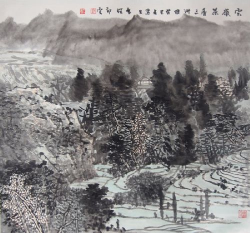 作为李派门生,郭雯传承了李可染、李宝林先生的山水精神,其山水画作取法宋元,功力扎实,自成风格,笔墨豪放,气势磅礴,厚润华滋;她的笔下既能造北方山水之苍劲浑厚,又流淌着南方山水的清韵灵秀,继承李可染“满”、“黑”、“厚”、“拙”的笔墨艺术特点,形成了一位南方女画家独特的山水风格,素有“南韵北骨”之称。