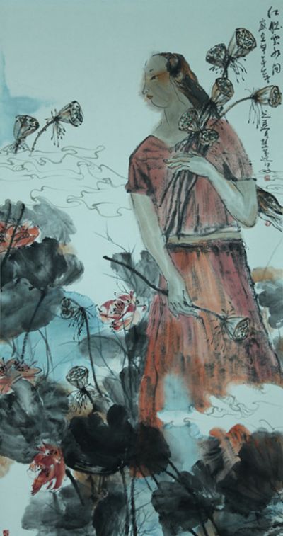 楚莲对人物画的表现精神有她自己的理解,并不断地刻苦研究,很可贵!楚莲的笔墨成熟了,却没有被程式化。别人无法复制或再现她的笔墨,因为她的笔墨是灵动的,不在于外部的形式构成。所以,她没有固定不变的画法,没有套路,与清初的“四王”不同,却与八大的笔墨精神相接近,与吴昌硕“画气不画形”的说法也相通。