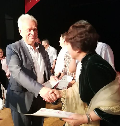法国莫雷市市长赛帕提耶先生为七名中国书画家颁发特别贡献奖。