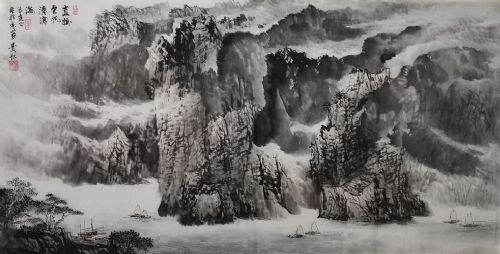 他画的是心中的山水胸藏锦绣,一吐灿然,道法自然而不拘泥自然,使他的写意山水画有了独特的魅力,洋洋洒洒间达到了物我相融,物我两忘的境界,画山则情满于山,画海则意溢于海,山水灵气化成画笔灵气,山水精神成就画的精神,山水人格铸就艺术家的人格,也许这就是史贵仁写意山水画的魂魄吧。