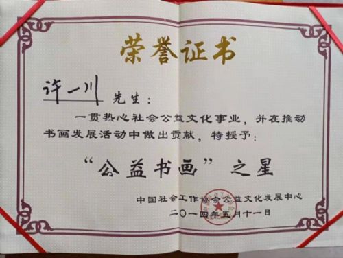 许一川热心投身于公益慈善美育事业,支持社会公益组织的慈善活动,进行美学美育公益讲座,并多次将作品和拍卖所得捐资捐赠。获宋庆龄基金会等公益社会组织颁发的〈公益之星〉等荣誉称号。