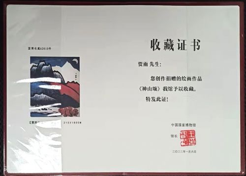 2018年1月,中国原生态山水画成功申遗,正式列入中国非遗项目,贾雨作为代表性传承人。此次成功申遗使中国原生态山水画将在国家的保护下,在国家非遗法的指导下更上层楼再铸辉煌。