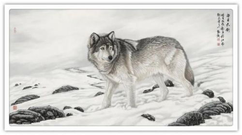 他的超现实动物作品,形神提炼于自然,用精工细笔画狮虎狼豹,极尽细致刻画的精工酝酿,毛发无疵,虹膜显观,对动物画的风姿动感工意胜真,纵观画坛,有如此精致造型功力的画家,唯吕维超一人使然。施色注重精致层层着染,铺细毫而渲染,不是西画色点的精致聚集,所以色彩的光度感非常柔和自然,不是点染涩沉与断续的呆板感。如果是点然,拿着放大镜一看就显粗糙,但是吕维超的铺毫渲染,让画面无论放大多倍,都不会出现点糙现象,是始终如一的精致,这就是设色超现实的绝能之功,不仅仅是技能层面的精致,还是天才方面的独享!