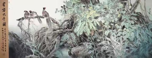 第二,妙于趣。王云兄的画工写结合,有意趣,耐品读,他善于从古人那里吸取养料,继承而不囿于传统,在构图、造型、色彩等方面自出机杼,形成自己的语言符号,别具风格特点。他强调画面的趣味性,从大视野的角度入手,用叙事的方式处理画面,他的画语言丰富,技法多样,繁花吐艳,万木葱茏,百鸟争鸣,他用拟人化的手法描绘物象,天趣盎然,一派勃勃生机,笔墨浑厚苍劲又不失典雅之趣,他的画与时俱进,贴近自然,充满新意与活力。在“趣”字上做足文章,细心经营每一个画面,大开合,大疏密,树木、花卉的表现都很有特色,粗旷与精致相得益彰,对比强烈,高度表达了物象的本质特征和精神力量,尤其是鸟的深度刻画,或窃窃私语或腾跃飞翔或高鸣或觅食,颇有戏剧性,把自然界的精灵表现的生动欢快,情感真挚,令人回味无穷。