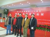 与总经理唐静、台籍企业家董事长黄胜雄总经理在展览作品前合影