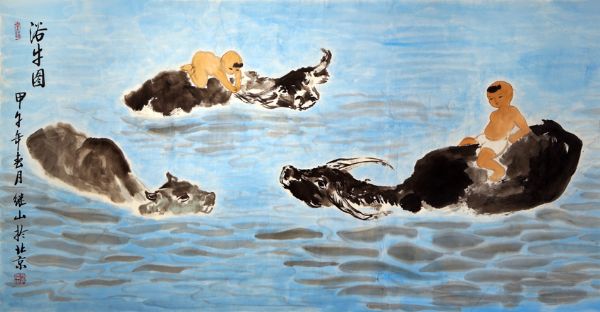 ![]() 从他画牛的作品中,体现了几个方面:具有中国的文化性,充分体现了中国儒学思想观;具有意义性,这种意义正是面对当下浮躁而应倡导的一种踏实的精神;具有故事性,在我们生活中流传牛的故事较多,从而给人们一种情节的符号记忆;具有共情性,他的绘画体现了作者的情感和诉求,以摄伏受众的心灵共鸣。