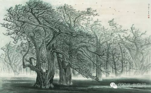 胡江先生先后师从陈金章和李宝林教授,在传承岭南笔墨的基础上融汇了北派的骨法技巧,逐步形成个人风格。作为岭南画派第四代传人、广东省文史研究馆馆员、广东岭南诗书画研究院执行院长,胡江的山水画,吸收了岭南派大师关山月、黎雄才注重生活、重于写生的艺术思想,在融入其恩师陈金章秀雅、清新画风的基础上,又融汇了北派山水大师李可染浑厚苍劲的画意及其恩师李宝林沉雄方拙的用笔特点,并逐步形成秀、雅、宏、雄的个人面貌。南秀北厚,作为传统中国画山水的界定,在当今中国画坛已泾渭难分。能将浑厚苍润、内敛沉秀融于一身,是胡江山水画的一个重要审美特征。他今年集中大部分时间和精力创作了一批以孙中山为题材的作品,既有岭南风韵又有思想深度。