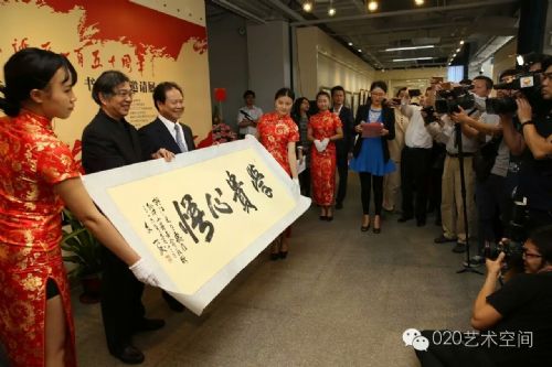 广东省人民政府原常务副省长、孙中山基金会理事长汤炳权,中山市委书记陈如桂,中山市政协主席丘树宏,广东省人大常委会原副主任、广东岭南诗书画研究院名誉院长陈坚,广东省政协原副主席、广东岭南诗书画研究院名誉院长王兆林,广东省政协外事侨务委员会原主任、孙中山基金会副理事长吕伟雄,中山市人大常委会原常务副主任、孙中山基金会副理事长陆国良,中山市副市长杨文龙,中山市委秘书长、改革办主任方维廷,中山市政协原副主席、孙中山基金会副秘书长苏伟强,中山市外事侨务局(港澳事务局)局长冯金怡,中山市文化广电新闻出版局局长罗建华,广东省侨办文教处调研员沈卫红以及自书画艺术界的各位同道,北京、武汉、南京和广州侨办代表,中山市四套班子主要领导、相关镇区领导嘉宾、书画爱好者、参展艺术家以及媒体朋友们近500人出席了隆重的开幕式,共展出陈金章、欧豪年、胡江三人创作的国画、书法作品共90件,展至11月16日,欢迎参观。