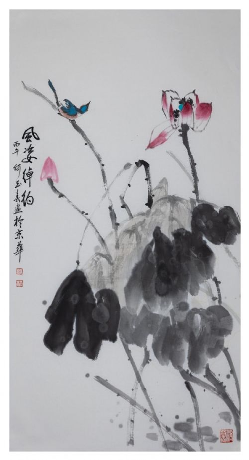 何玉春笔下的荷花,既有“墨色深浅交错”的写意洒脱(《遗忘时光》评),又有“细节精致入微”的工笔匠心(《瑶》评)。正如“高原红”所言,每一幅都像“大自然中的一抹清风”,在浓淡干湿间,将夏日荷塘的“宁静典雅”(《堇年》评)与“绚丽多彩”(《爱笑的眼睛》评)熔于一炉。尤其《荷香》等作品,荷叶“翠绿欲滴”(《会飞的蝶》评),花瓣“灵动逼真”(《汤汤》评),墨色与色彩的碰撞,既保留了传统写意的“意到笔不到”,又以层次分明的笔触赋予画面“立体感与生动性”(《胡琼》评),难怪被赞为“国礼水准”的艺术表达。