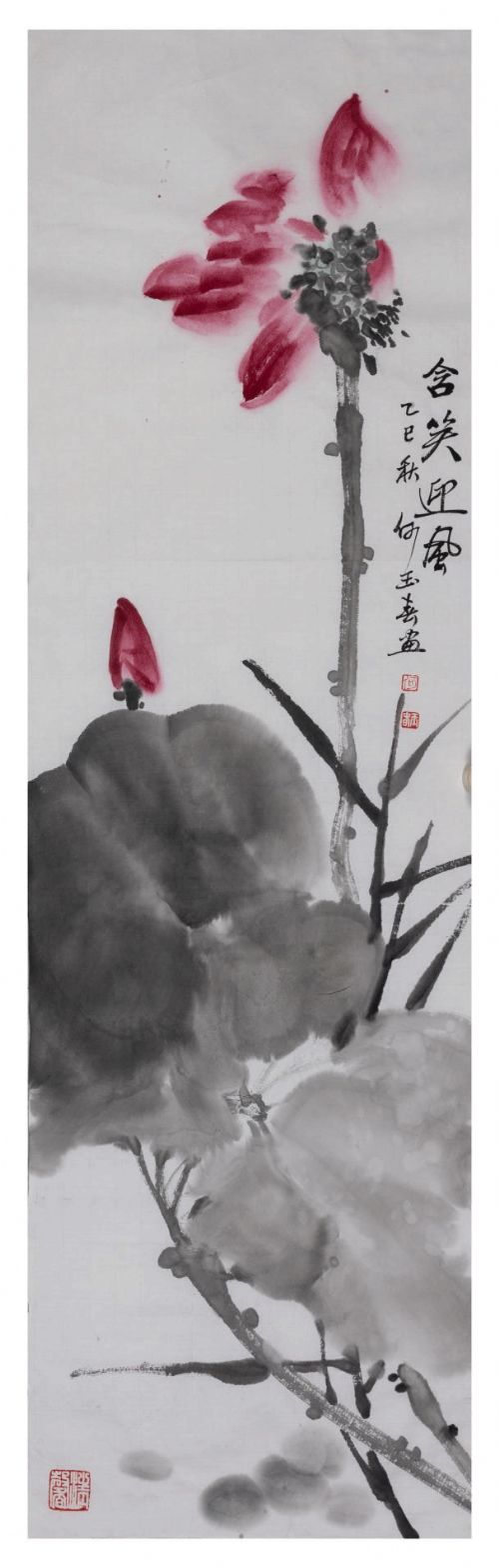 荷花自古是文人风骨的象征,画家何玉春的创作则在此基础上注入了现代观者的精神需求。有评论者说“在繁杂喧嚣中带来片刻宁静”(《堇年》),恰是击中了当代人对“心灵净化”的渴望。画中“半池月光洒落荷叶”(《歌手艾美》评)的意境,并非简单的景物再现,而是通过留白与墨韵,构建出“超脱尘世的境界”——观者仿佛能从摇曳的荷叶间看见自己内心的“安详”(《坦然微笑李小芳》评),从亭亭玉立的荷花中读懂“出淤泥而不染”的生命哲学。